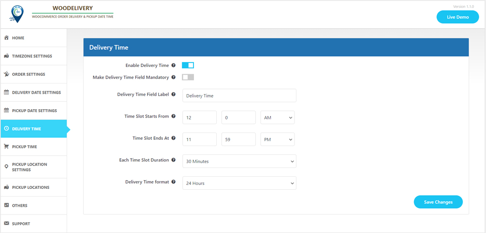 - Make the delivery time field either mandatory or optional on the checkout page.